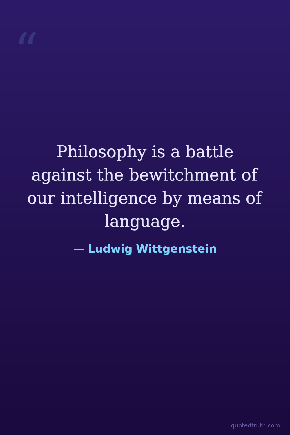 Philosophy is a battle against the bewitchment of our intelligence by means of language.