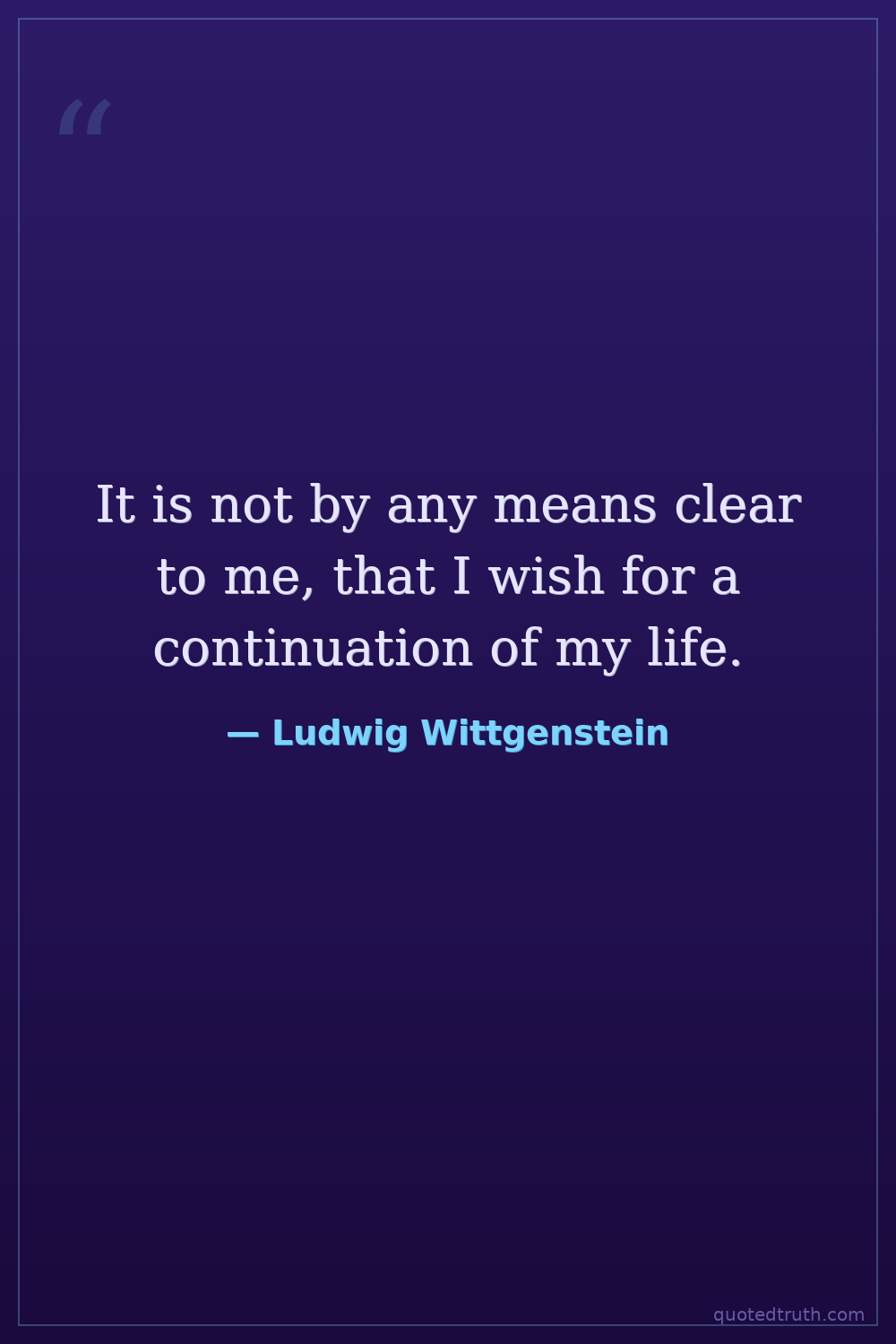 It is not by any means clear to me, that I wish for a continuation of my life.