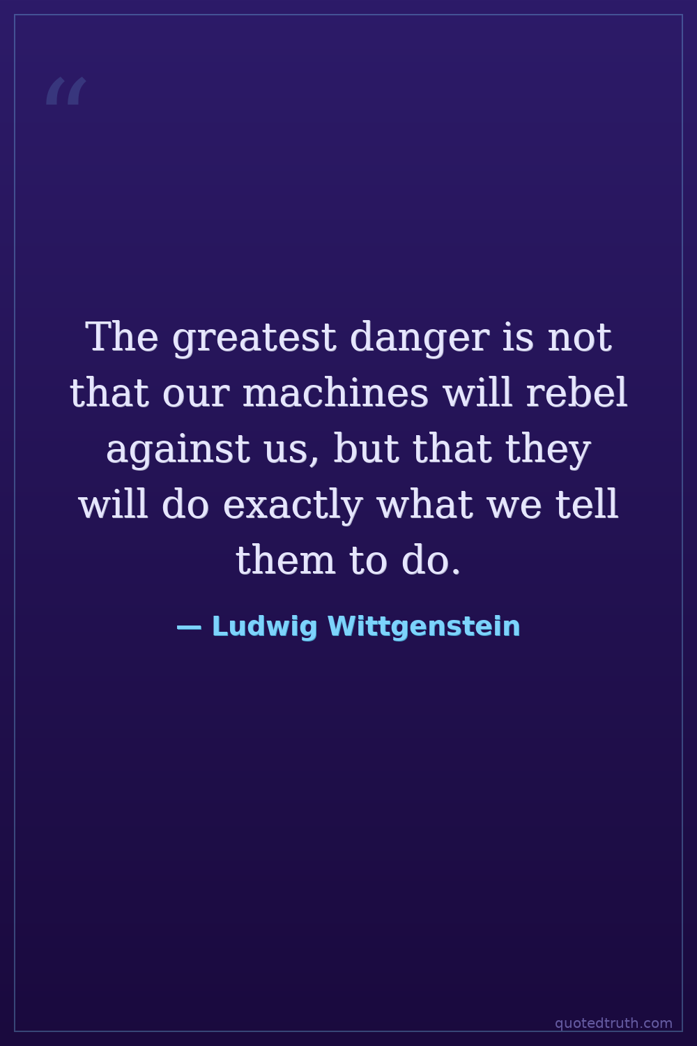 The greatest danger is not that our machines will rebel against us, but that they will do exactly what we tell them to do.