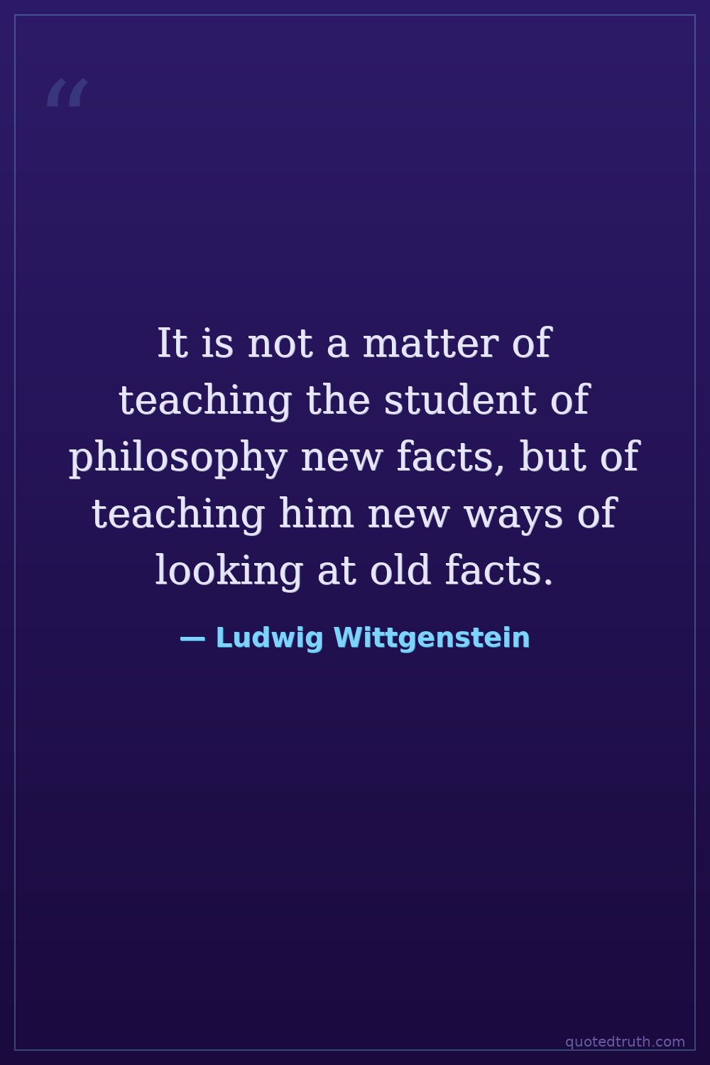 It is not a matter of teaching the student of philosophy new facts, but of teaching him new ways of looking at old facts.