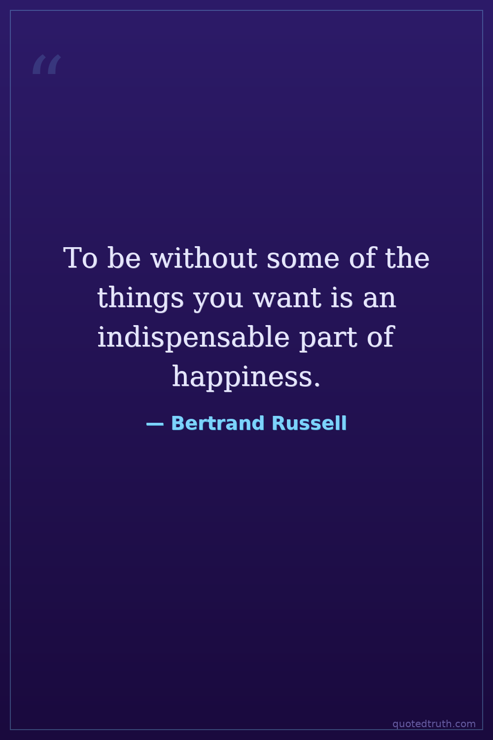 To be without some of the things you want is an indispensable part of happiness.