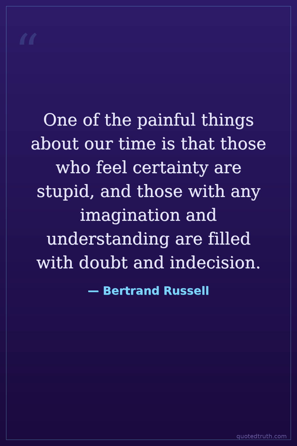 One of the painful things about our time is that those who feel certainty are stupid, and those with any imagination and understanding are filled with doubt and indecision.