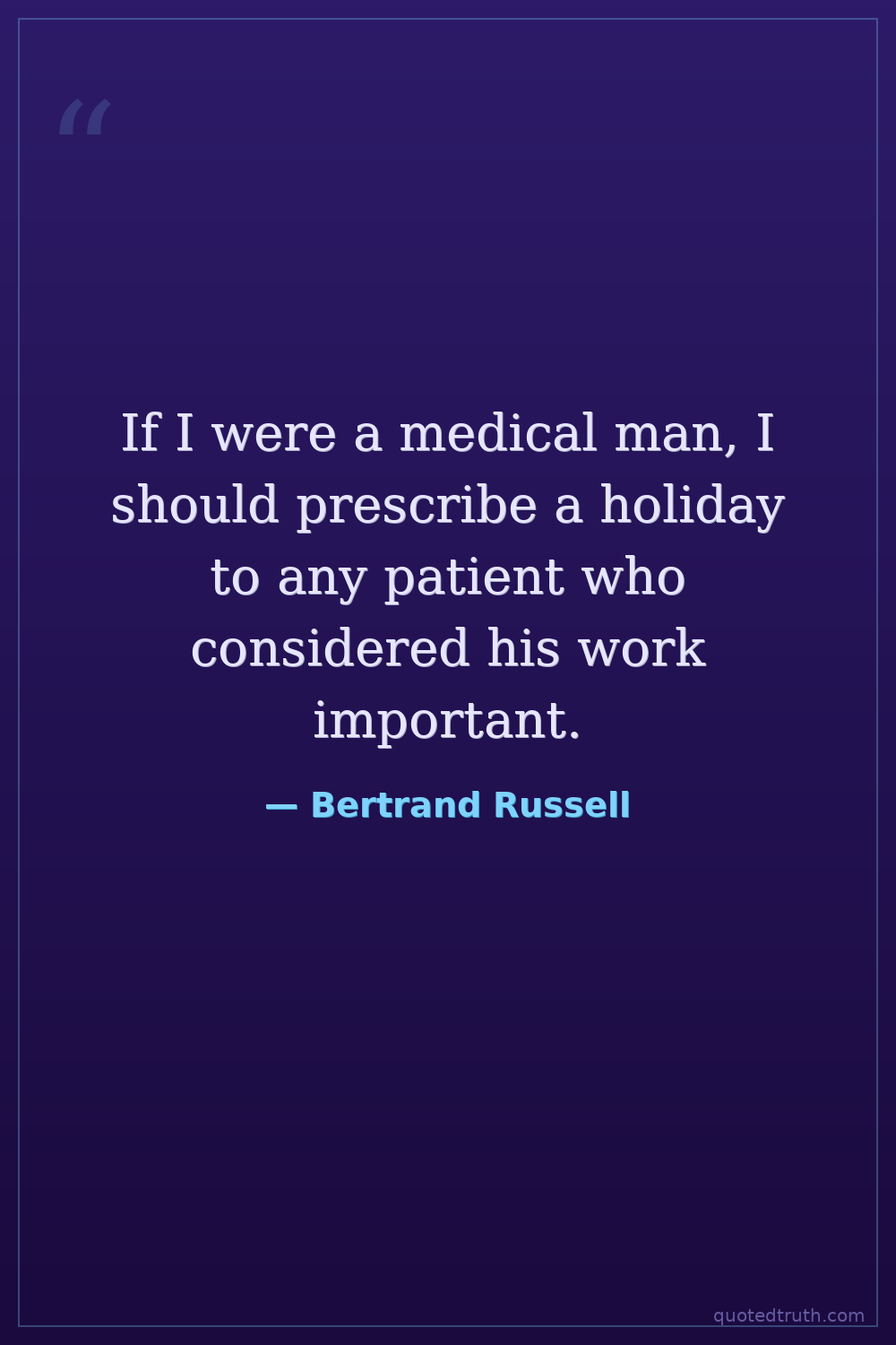 If I were a medical man, I should prescribe a holiday to any patient who considered his work important.
