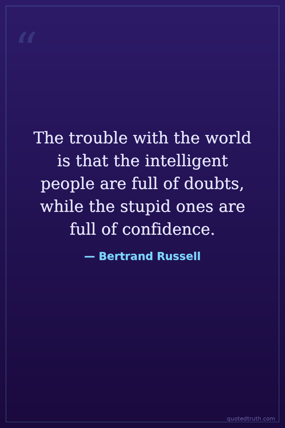 The trouble with the world is that the intelligent people are full of doubts, while the stupid ones are full of confidence.
