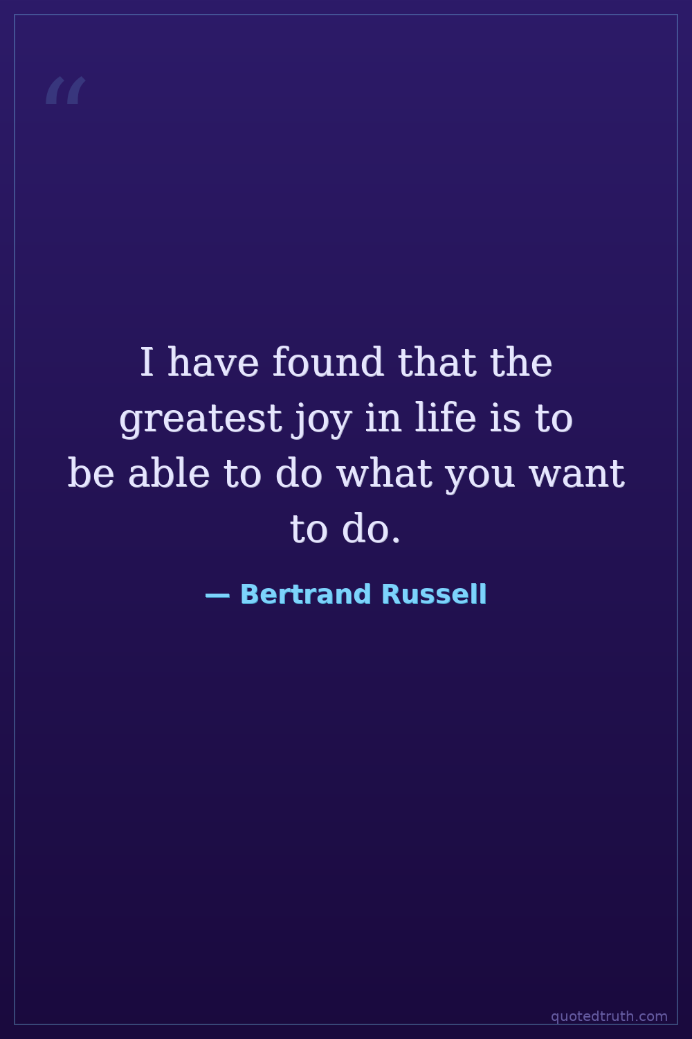 I have found that the greatest joy in life is to be able to do what you want to do.