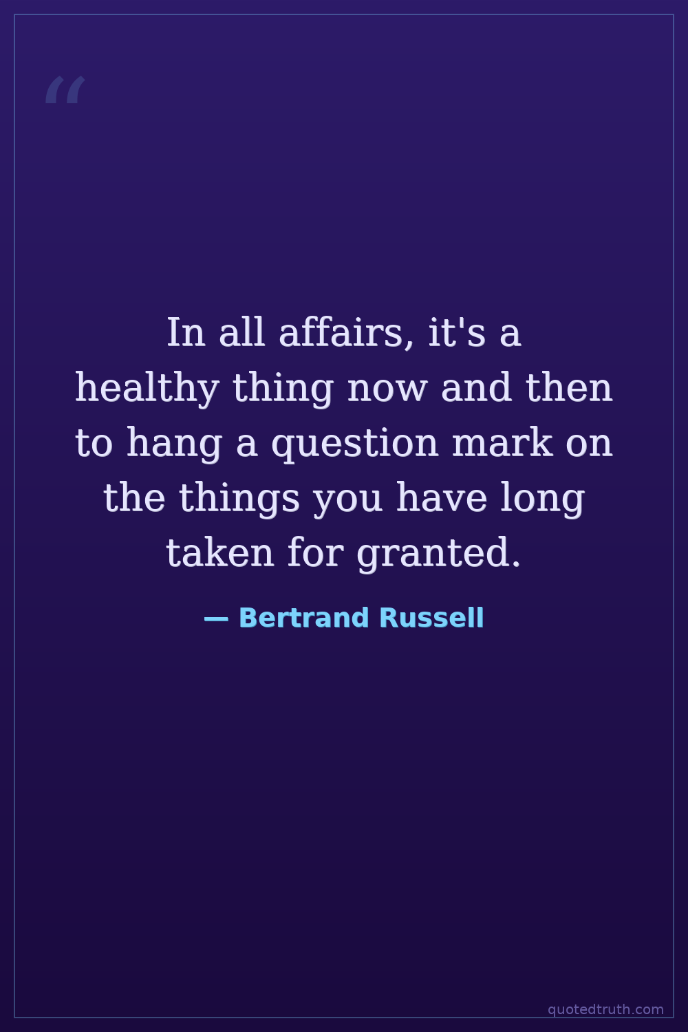 In all affairs, it's a healthy thing now and then to hang a question mark on the things you have long taken for granted.