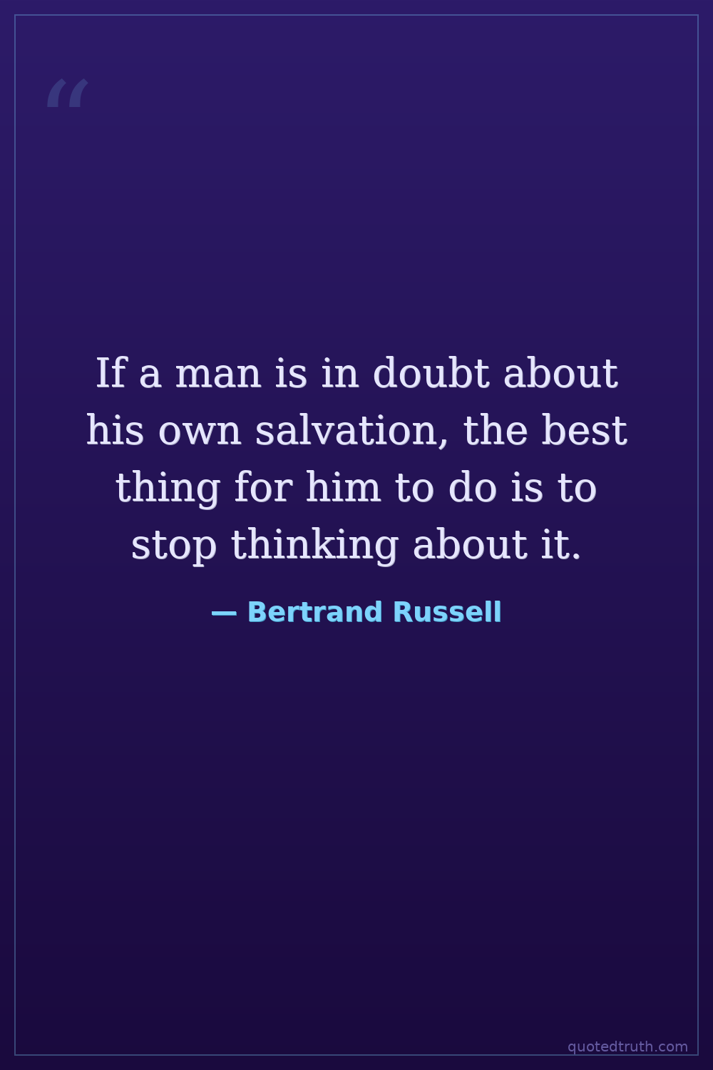 If a man is in doubt about his own salvation, the best thing for him to do is to stop thinking about it.
