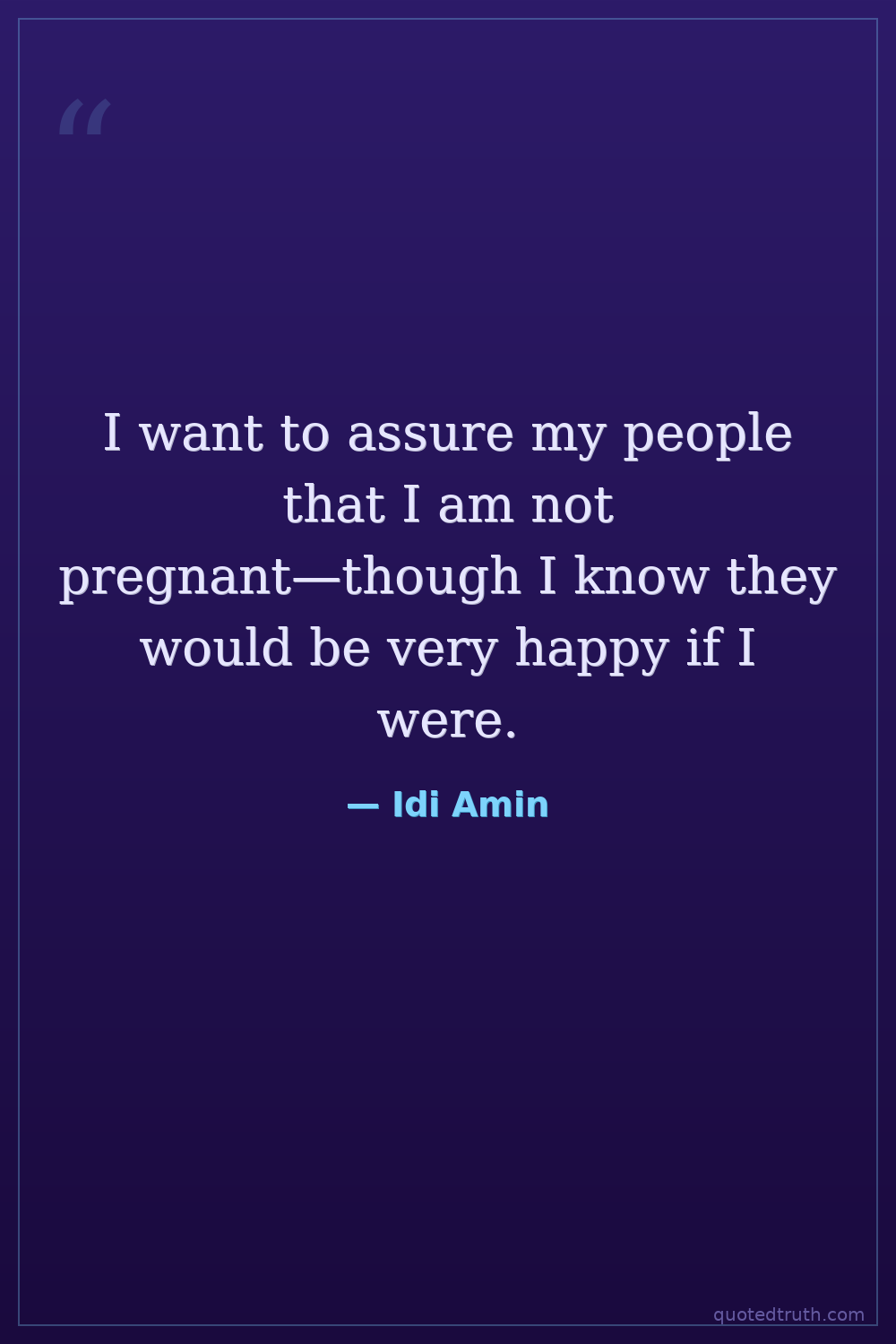 I want to assure my people that I am not pregnant—though I know they would be very happy if I were.