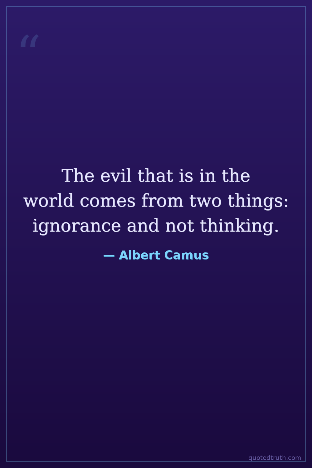 The evil that is in the world comes from two things: ignorance and not thinking.