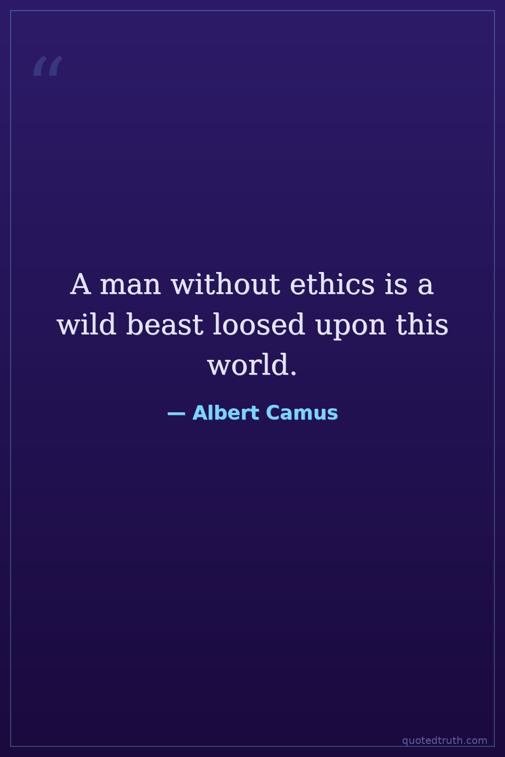 A man without ethics is a wild beast loosed upon this world.