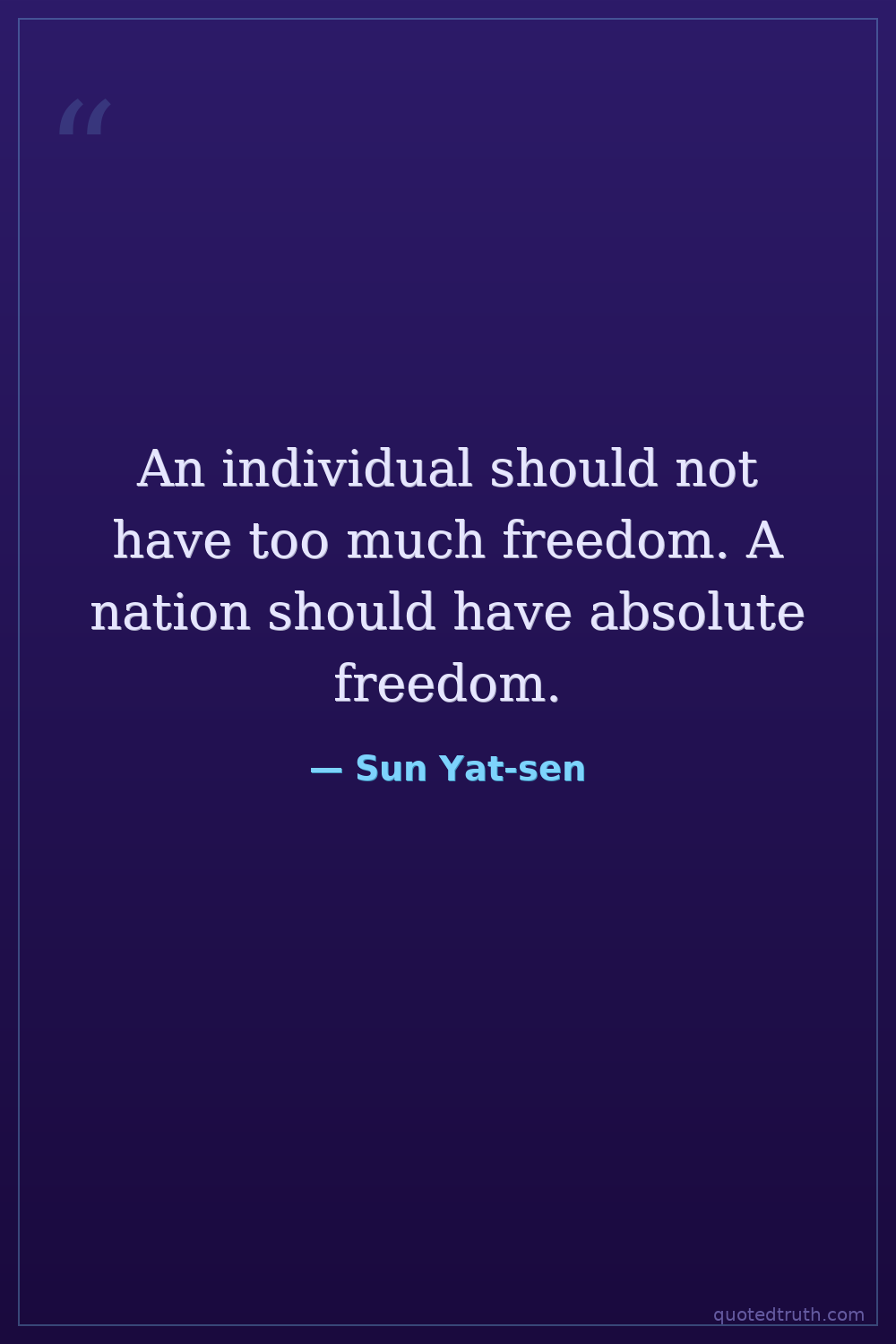 An individual should not have too much freedom. A nation should have absolute freedom.