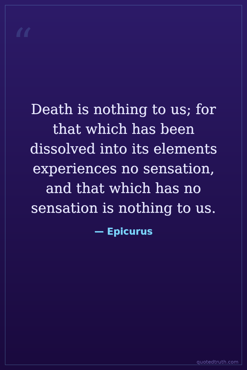 Death is nothing to us; for that which has been dissolved into its elements experiences no sensation, and that which has no sensation is nothing to us.