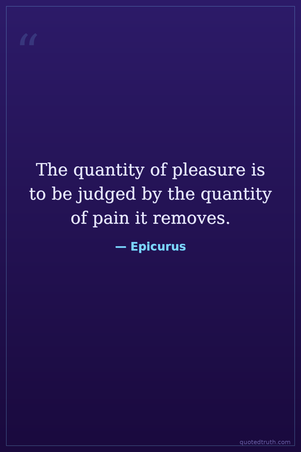 The quantity of pleasure is to be judged by the quantity of pain it removes.