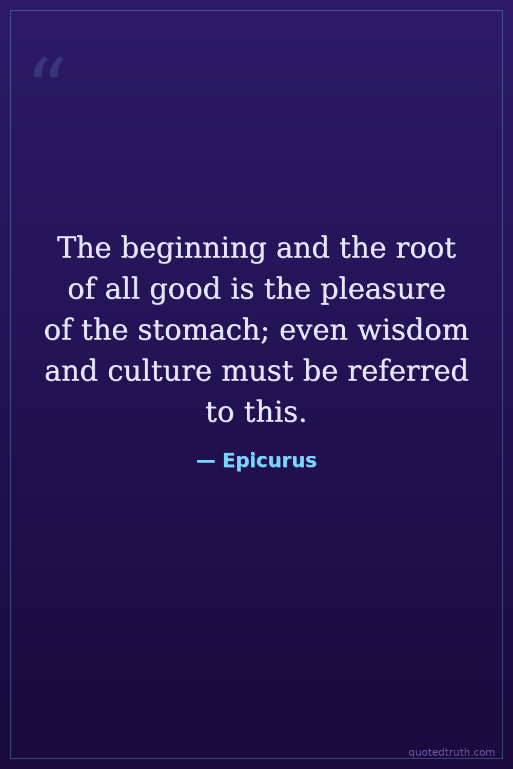 The beginning and the root of all good is the pleasure of the stomach; even wisdom and culture must be referred to this.