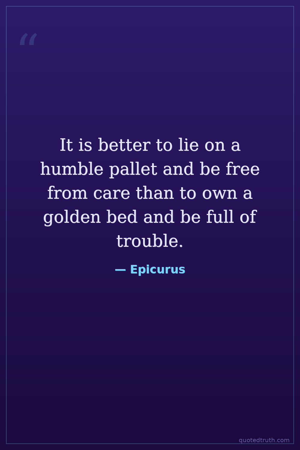 It is better to lie on a humble pallet and be free from care than to own a golden bed and be full of trouble.