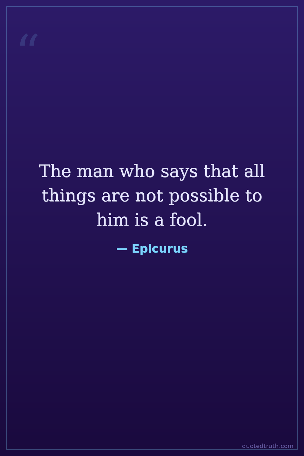 The man who says that all things are not possible to him is a fool.