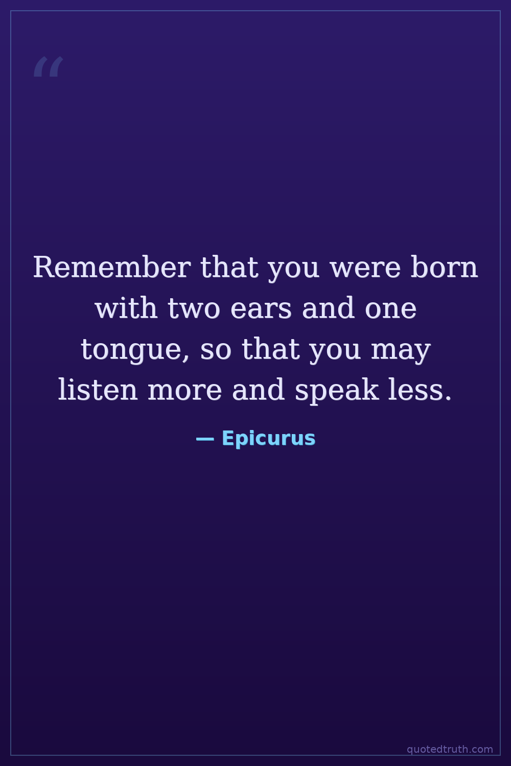 Remember that you were born with two ears and one tongue, so that you may listen more and speak less.