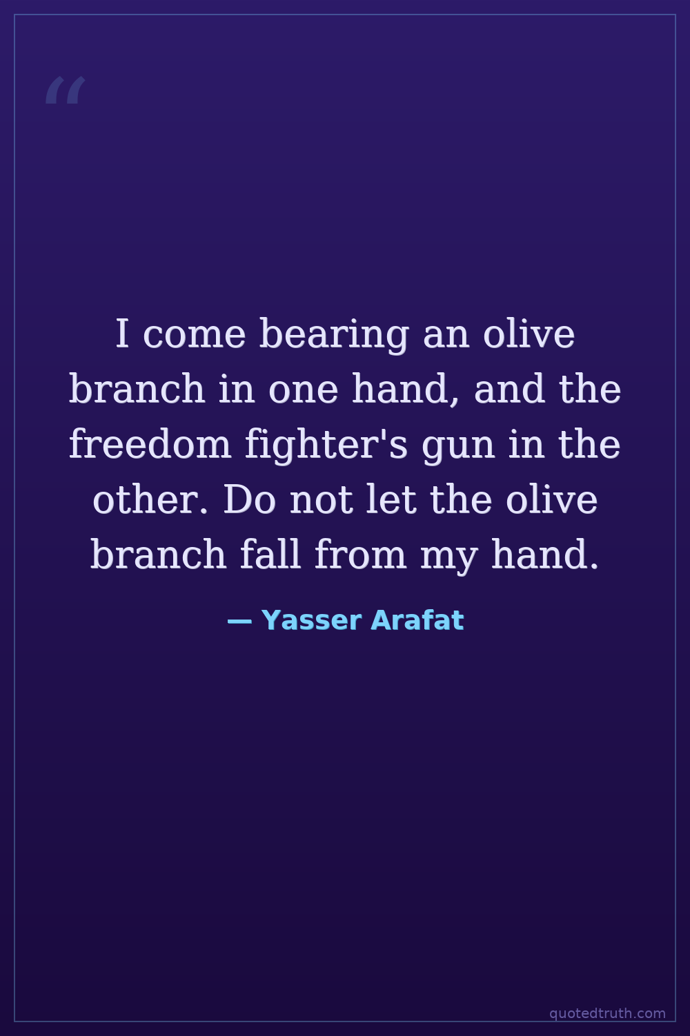 I come bearing an olive branch in one hand, and the freedom fighter's gun in the other. Do not let the olive branch fall from my hand.
