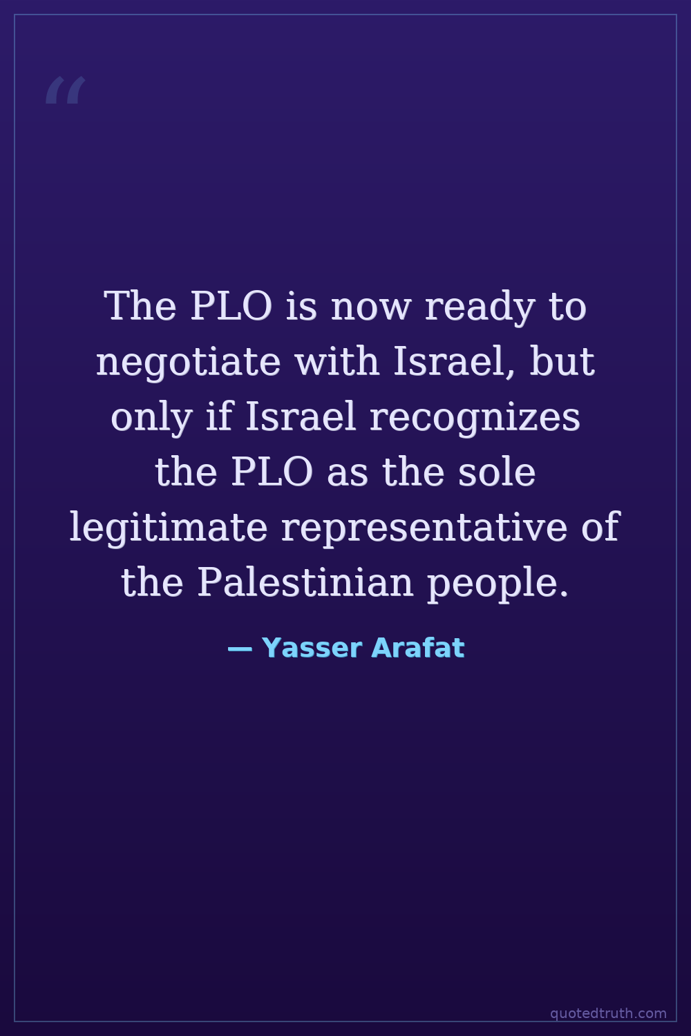 The PLO is now ready to negotiate with Israel, but only if Israel recognizes the PLO as the sole legitimate representative of the Palestinian people.