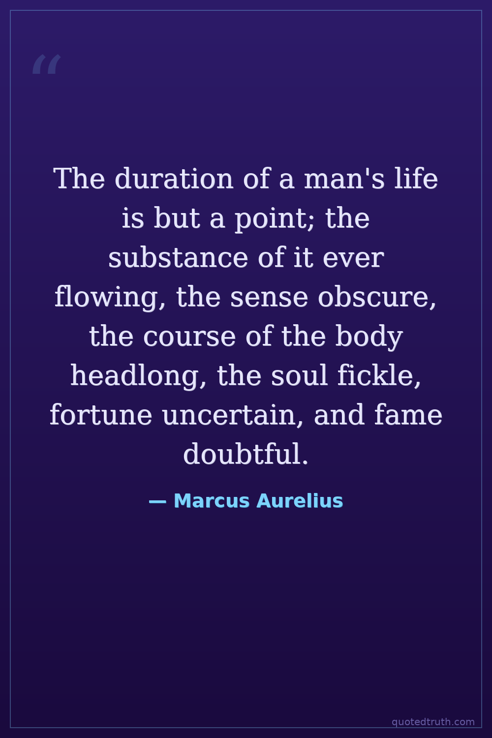 The duration of a man's life is but a point; the substance of it ever flowing, the sense obscure, the course of the body headlong, the soul fickle, fortune uncertain, and fame doubtful.