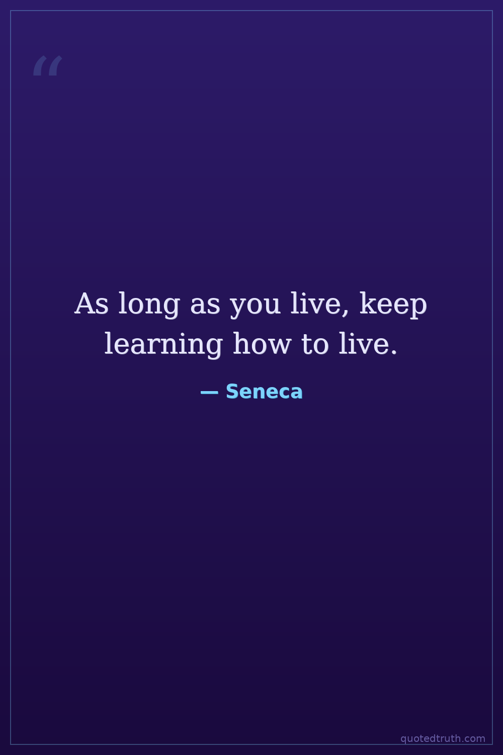 As long as you live, keep learning how to live.