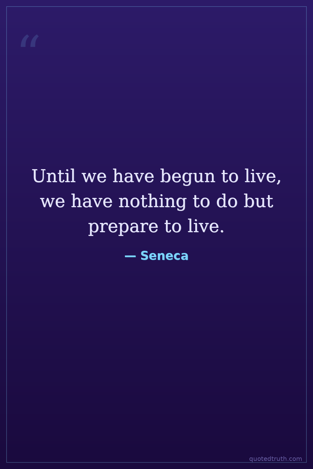 Until we have begun to live, we have nothing to do but prepare to live.
