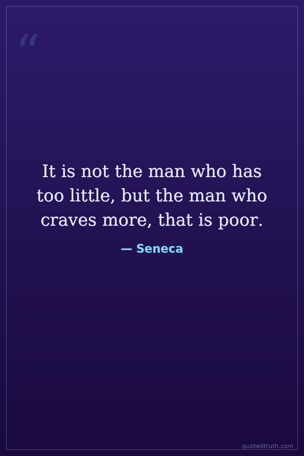 It is not the man who has too little, but the man who craves more, that is poor.