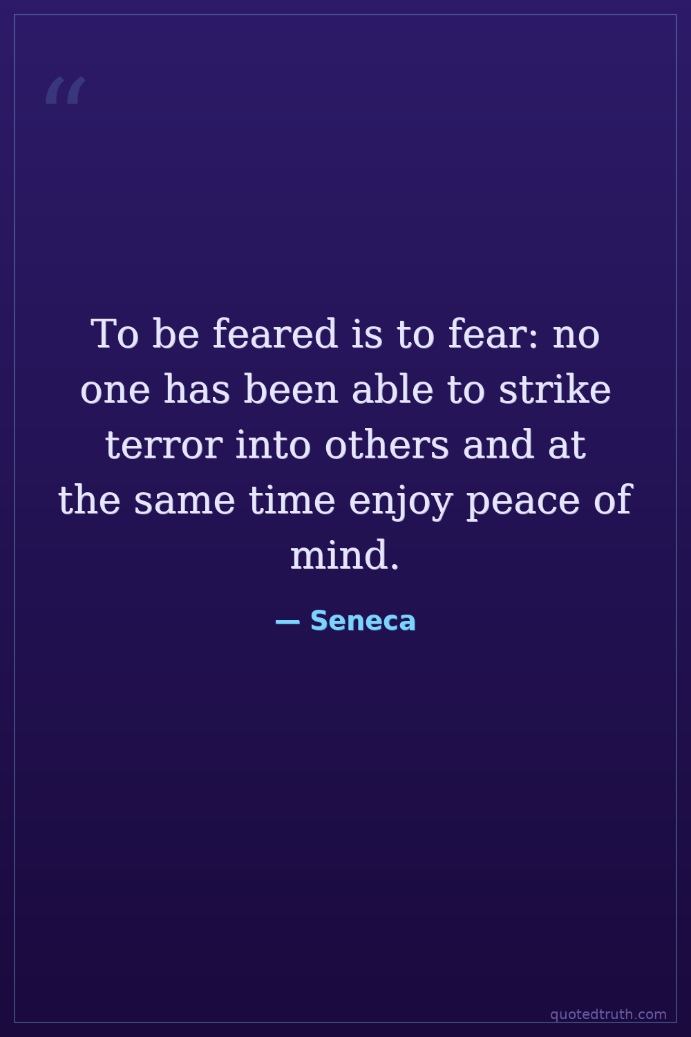 To be feared is to fear: no one has been able to strike terror into others and at the same time enjoy peace of mind.