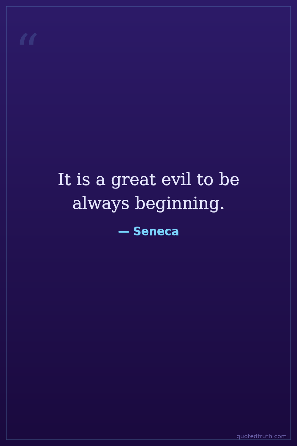It is a great evil to be always beginning.