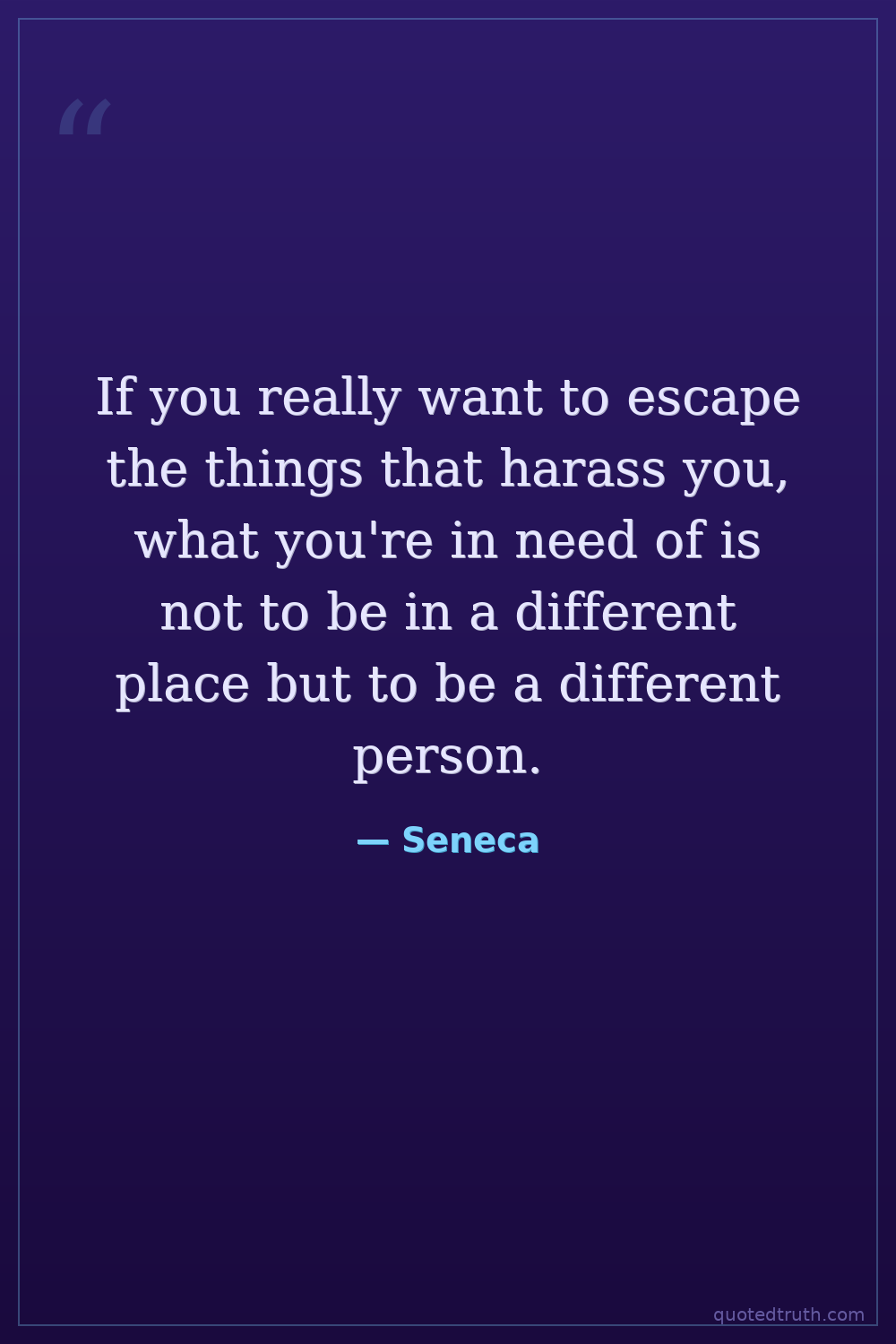 If you really want to escape the things that harass you, what you're in need of is not to be in a different place but to be a different person.
