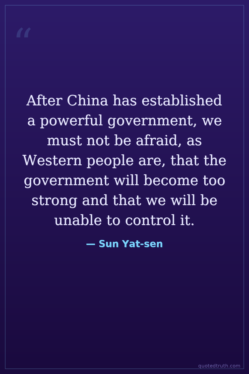 After China has established a powerful government, we must not be afraid, as Western people are, that the government will become too strong and that we will be unable to control it.