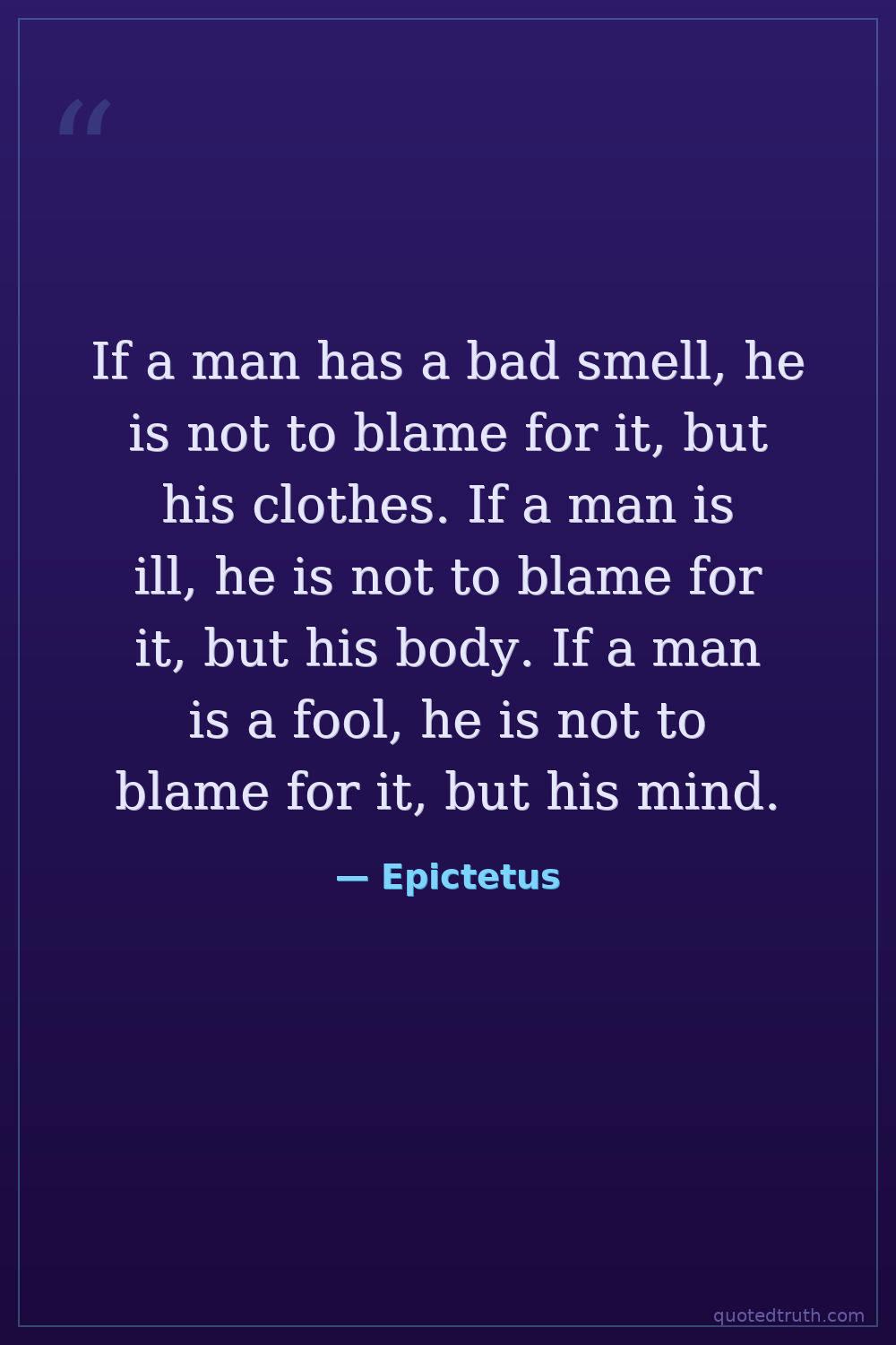 If a man has a bad smell, he is not to blame for it, but his clothes. If a man is ill, he is not to blame for it, but his body. If a man is a fool, he is not to blame for it, but his mind.