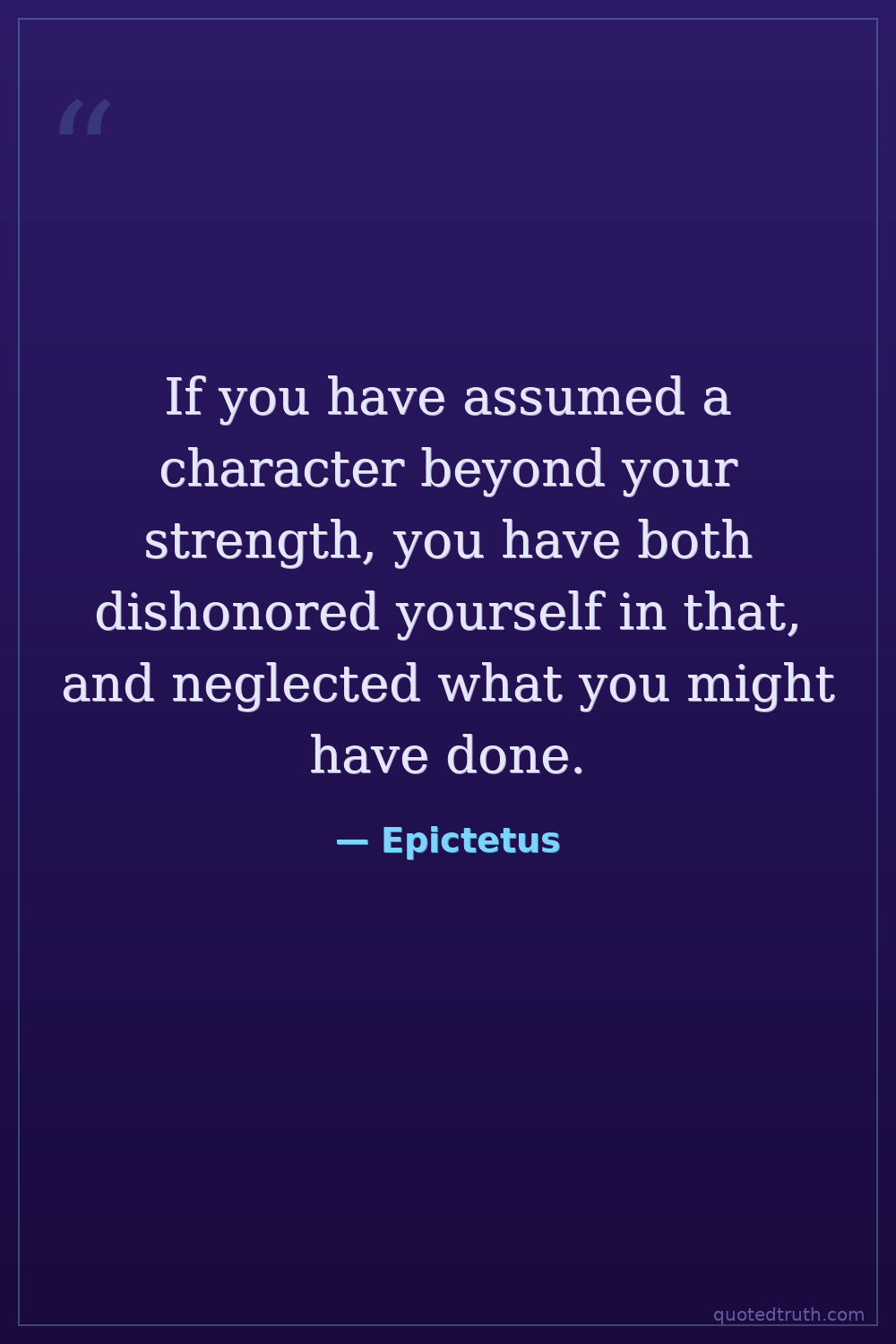If you have assumed a character beyond your strength, you have both dishonored yourself in that, and neglected what you might have done.