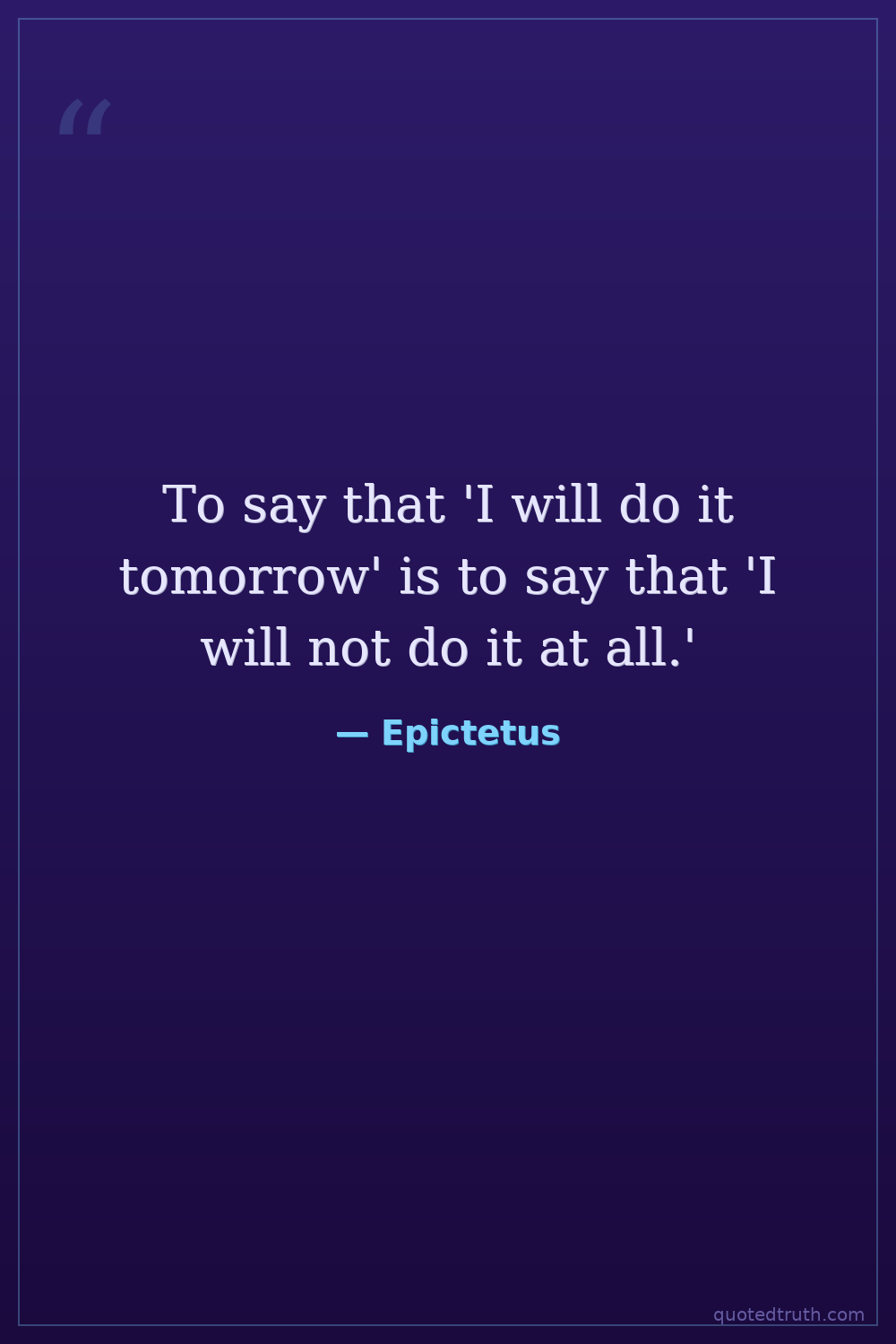 To say that 'I will do it tomorrow' is to say that 'I will not do it at all.'