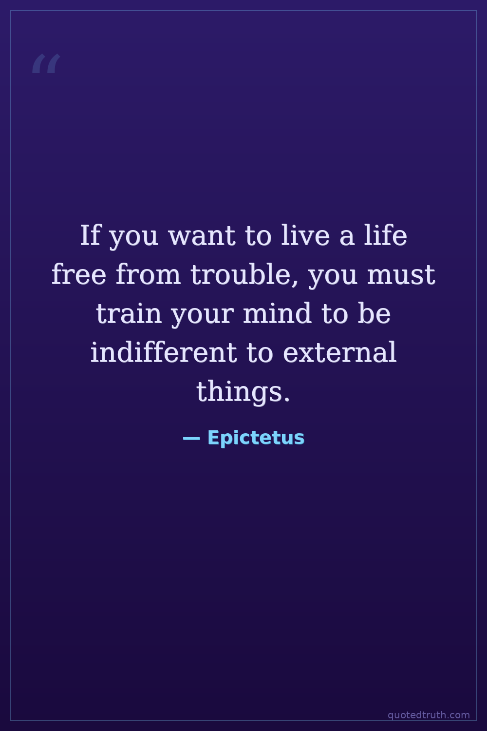 If you want to live a life free from trouble, you must train your mind to be indifferent to external things.