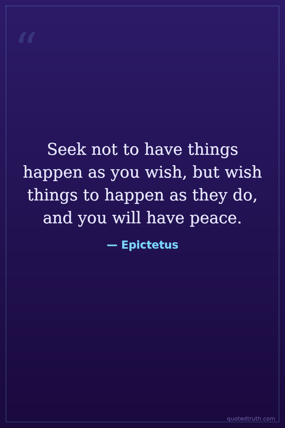 Seek not to have things happen as you wish, but wish things to happen as they do, and you will have peace.