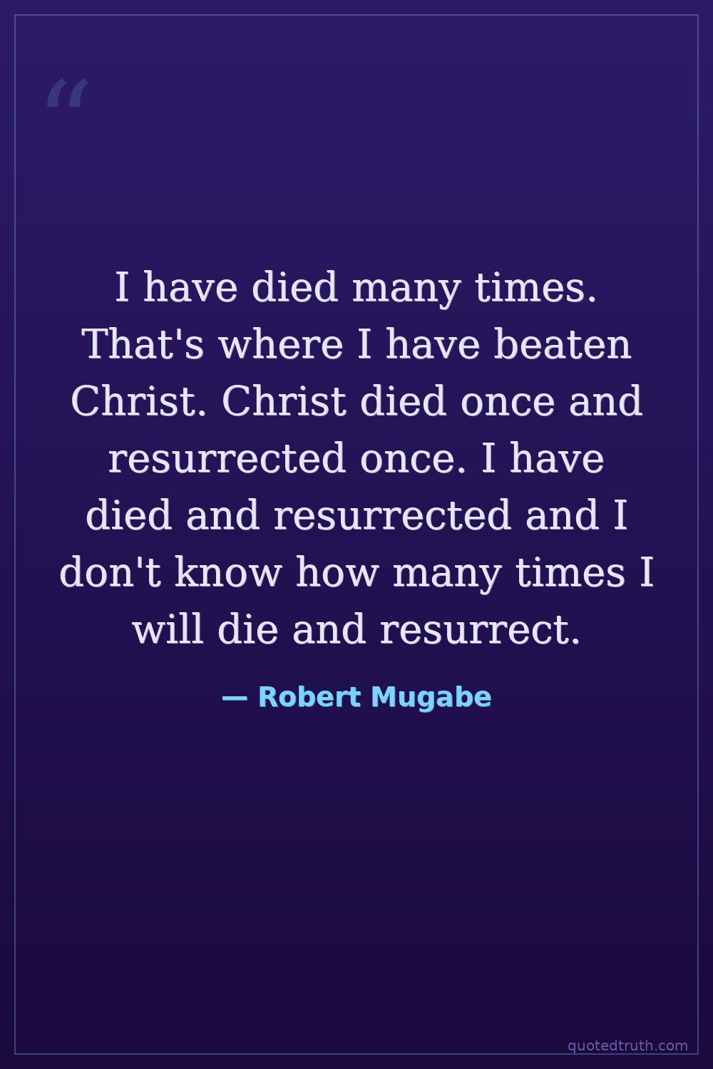 I have died many times. That's where I have beaten Christ. Christ died once and resurrected once. I have died and resurrected and I don't know how many times I will die and resurrect.