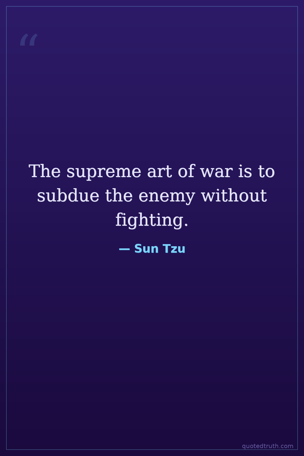 The supreme art of war is to subdue the enemy without fighting.