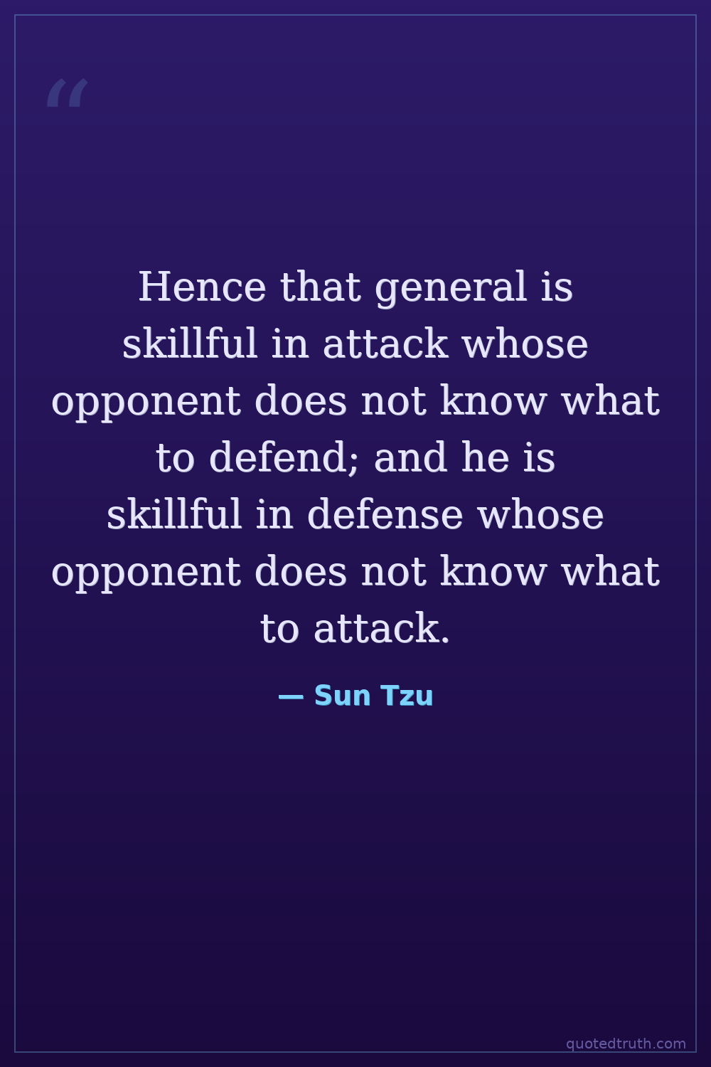 Hence that general is skillful in attack whose opponent does not know what to defend; and he is skillful in defense whose opponent does not know what to attack.