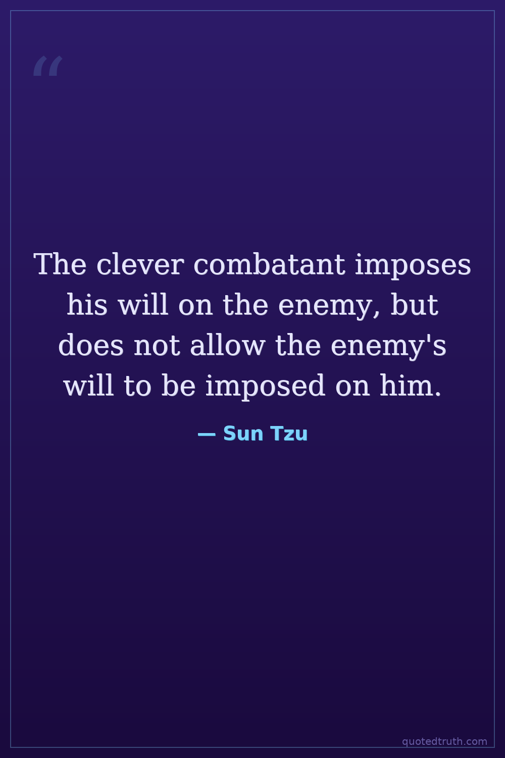 The clever combatant imposes his will on the enemy, but does not allow the enemy's will to be imposed on him.