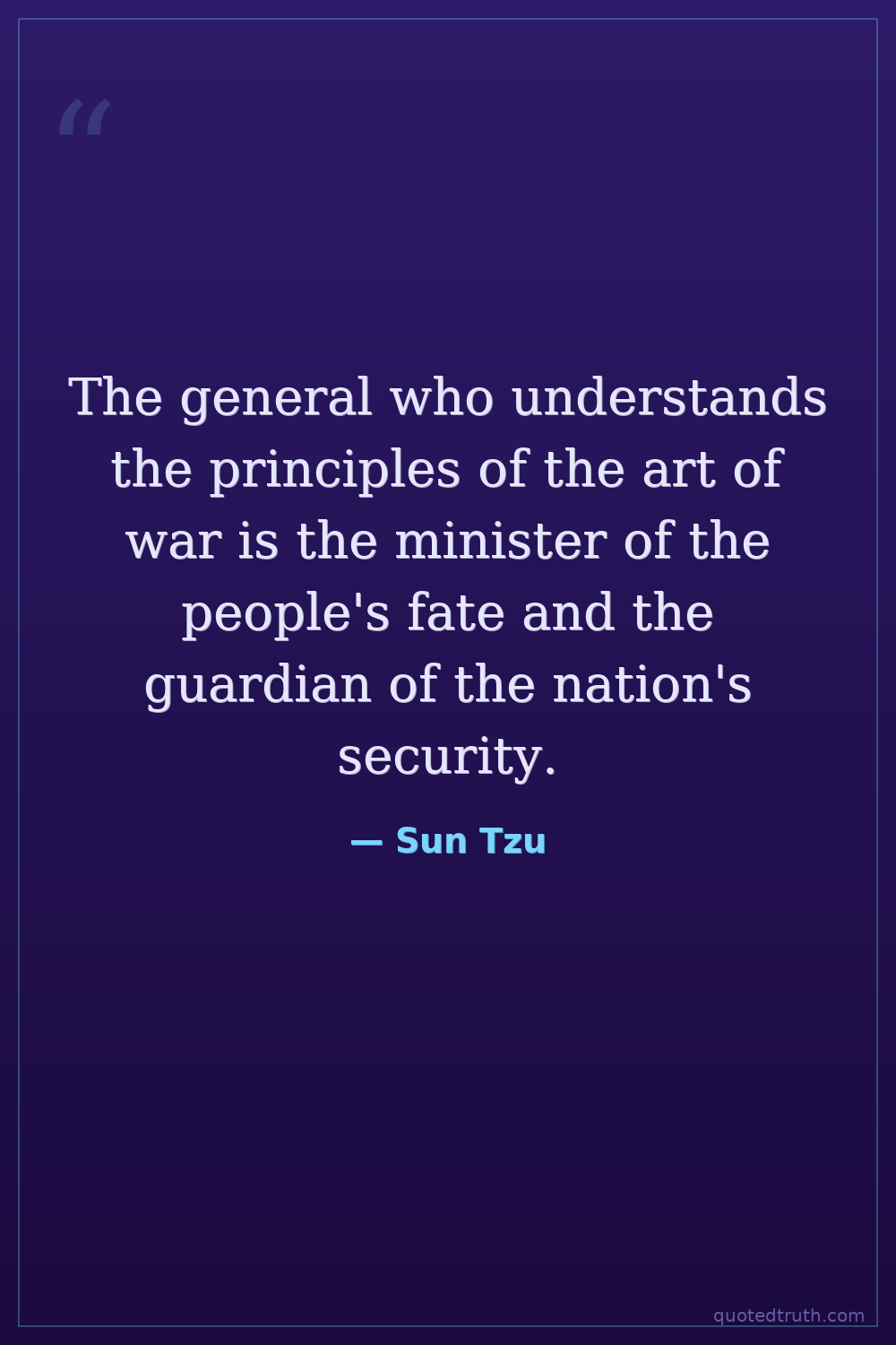 The general who understands the principles of the art of war is the minister of the people's fate and the guardian of the nation's security.