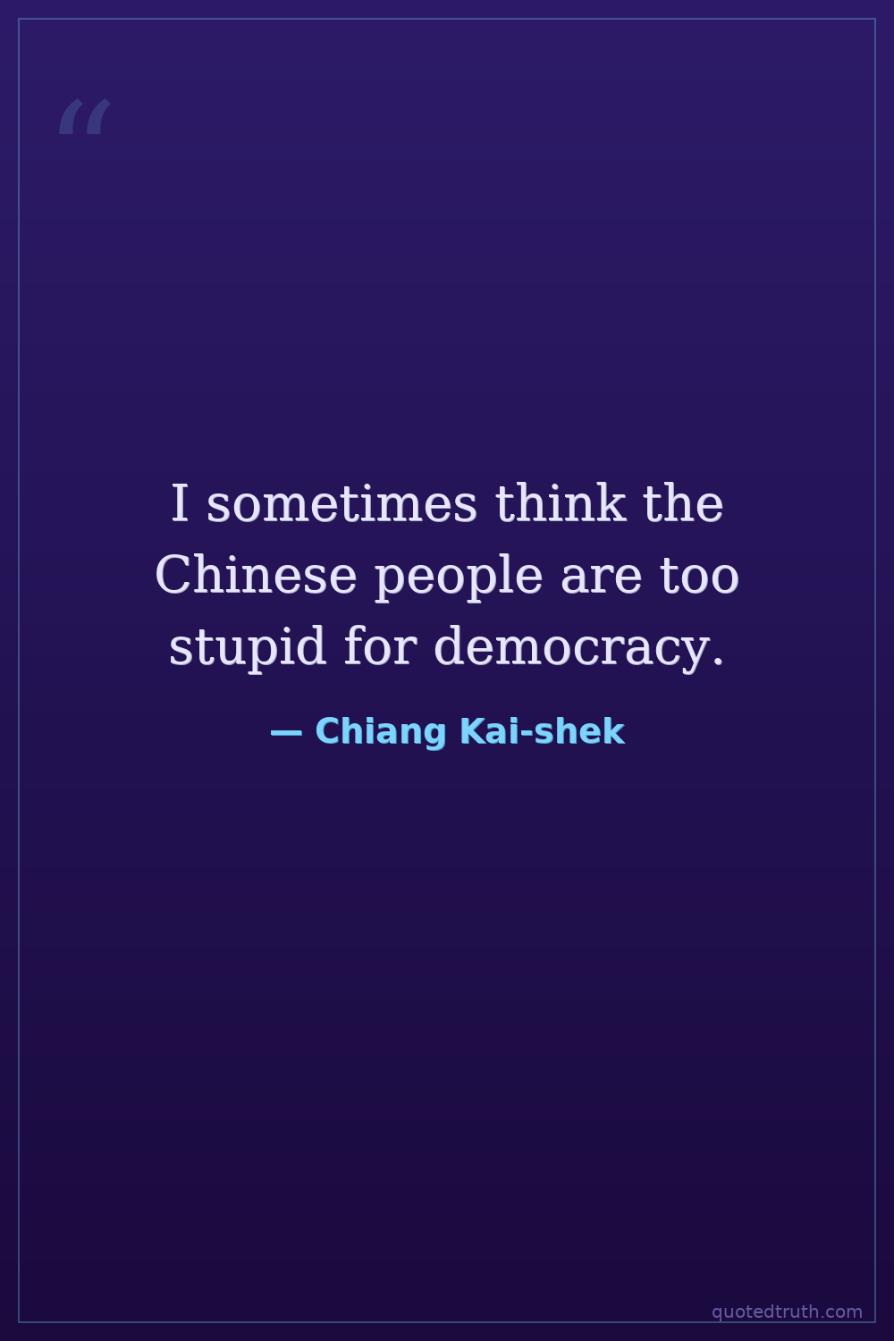 I sometimes think the Chinese people are too stupid for democracy.