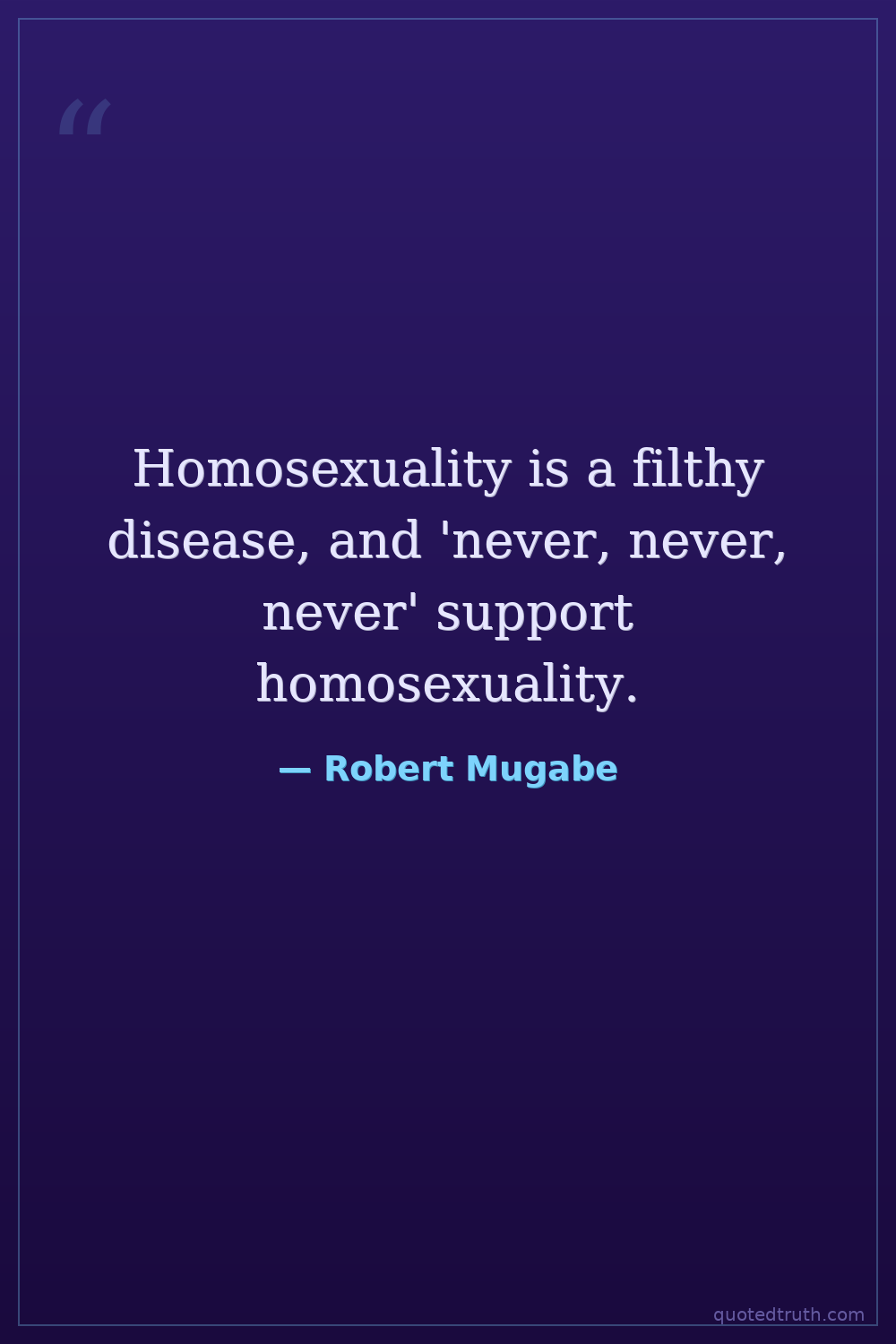 Homosexuality is a filthy disease, and 'never, never, never' support homosexuality.