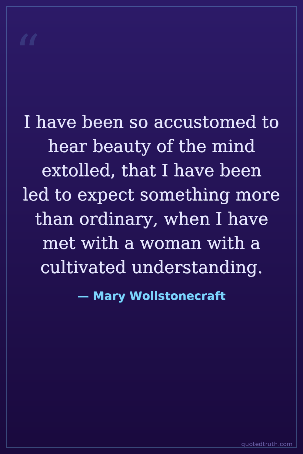 I have been so accustomed to hear beauty of the mind extolled, that I have been led to expect something more than ordinary, when I have met with a woman with a cultivated understanding.