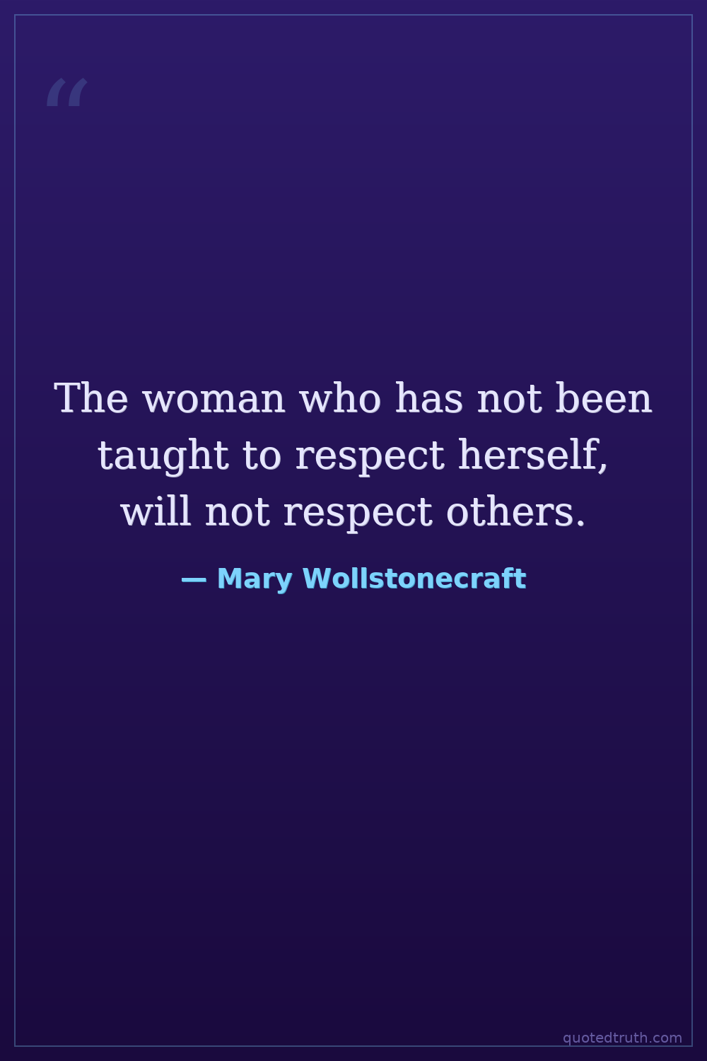 The woman who has not been taught to respect herself, will not respect others.