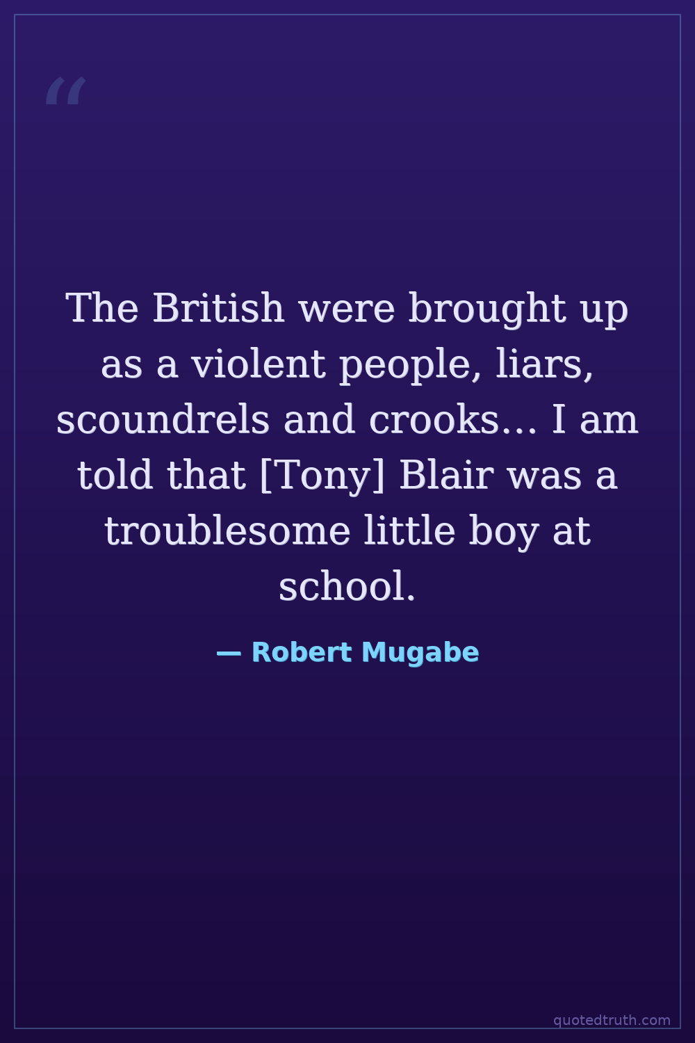 The British were brought up as a violent people, liars, scoundrels and crooks… I am told that [Tony] Blair was a troublesome little boy at school.