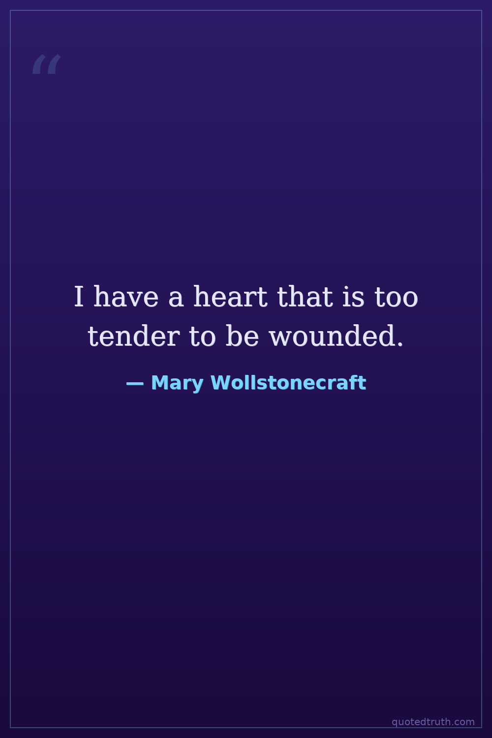 I have a heart that is too tender to be wounded.