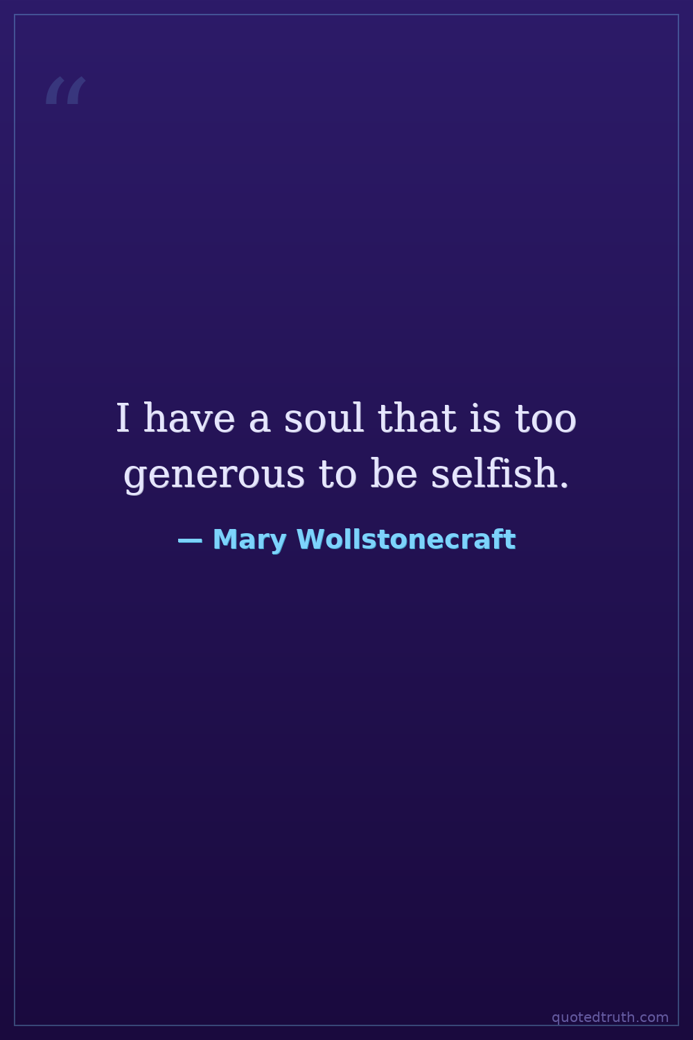 I have a soul that is too generous to be selfish.