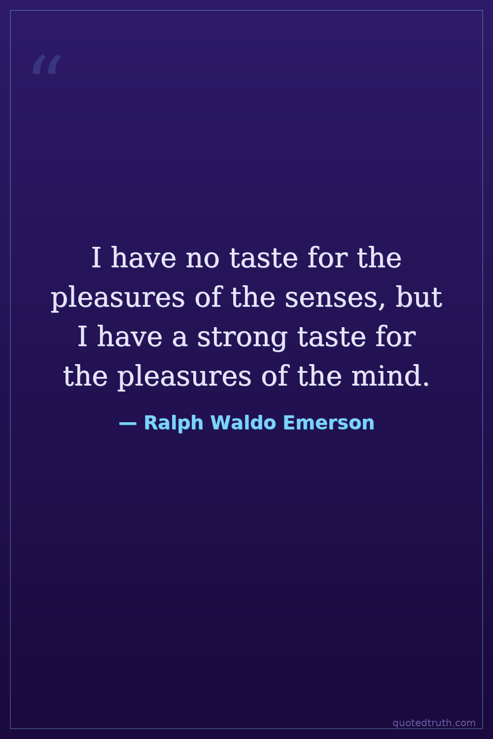 I have no taste for the pleasures of the senses, but I have a strong taste for the pleasures of the mind.