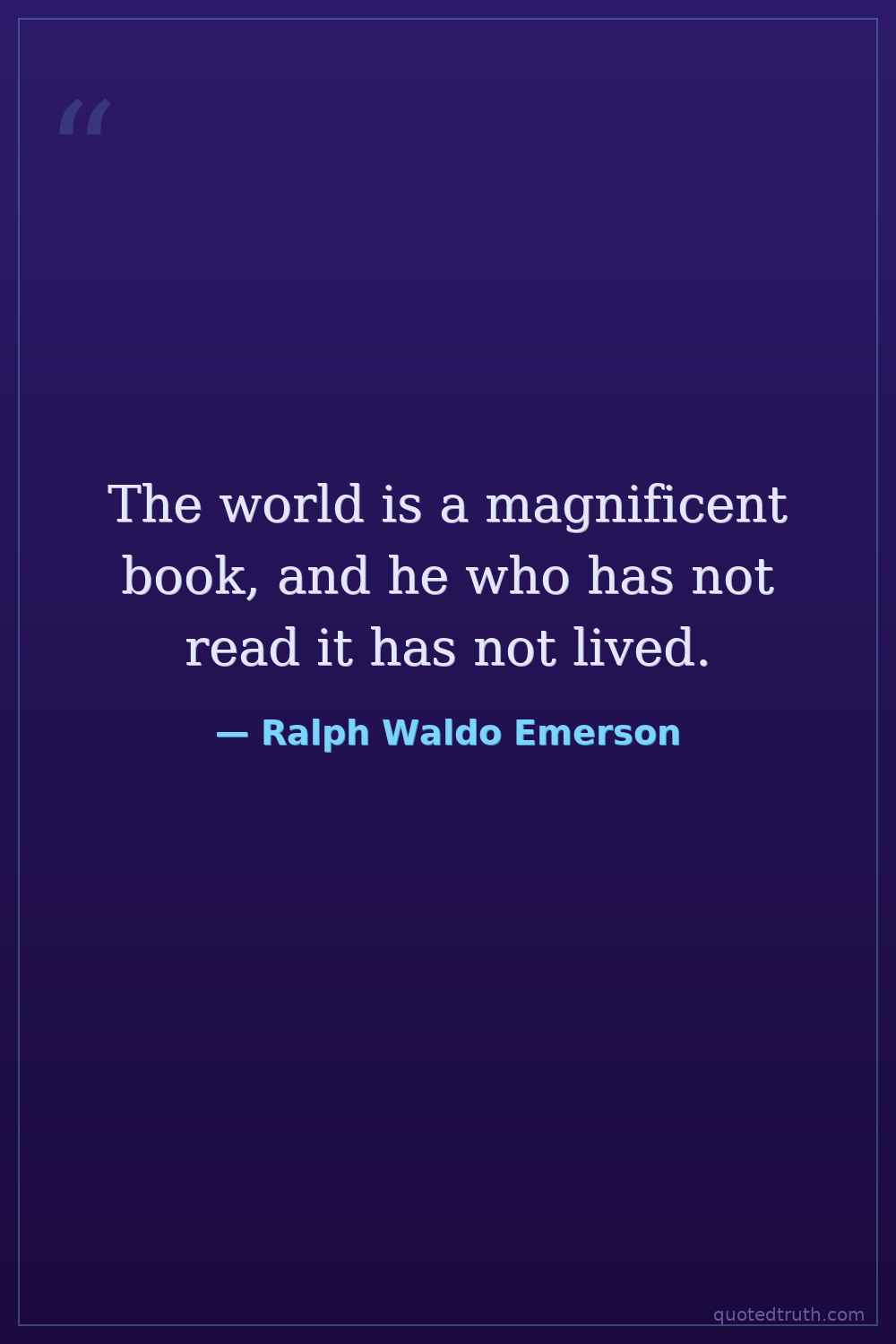 The world is a magnificent book, and he who has not read it has not lived.